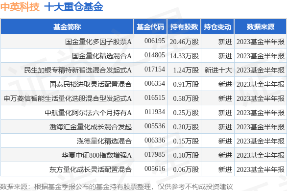 根据2023基金半年报公募基金重仓股数据,重仓该股的公募基金共10家,其中持有数量最多的公募基金为国金量化多因子股票A。国金量化多因子股票A目前规模为41.17亿元,最新净值2.0459(9月27日),较上一交易日上涨0.13%,近一年上涨16.72%。该公募基金现任基金经理为马芳 姚加红。姚加红在任的基金产品包括:国金量化多策略A,管理时间为2023年1月5日至今,期间收益率为5.96%;马芳在任的基金产品包括:国金量化多策略A,管理时间为2020年9月3日至今,期间收益率为32.08%;国金量化精选混合A,管理时间为2022年3月18日至今,期间收益率为32.32%;国金300指数增强A,管理时间为2022年11月14日至今,期间收益率为7.92%。