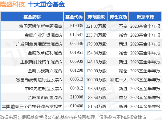 重仓隆盛科技的前十大公募基金请见下表: