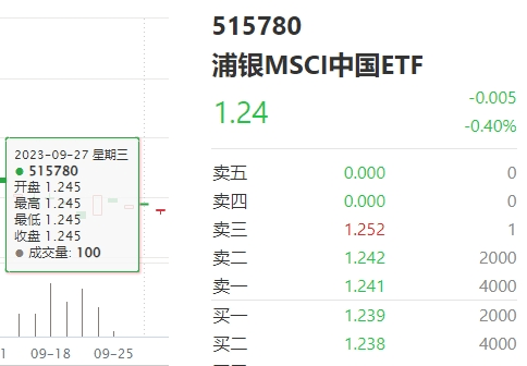 上交所数据显示,9月27日,浦银安盛MSCI中国A股ETF的日成交额仅125元(即仅成交了一手)。