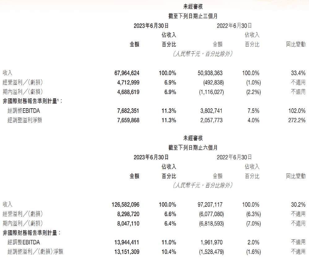 9月28日,美团发布中报显示,截至2023年6月30日半年度盈利80.47亿元,上年同期亏损68.19亿元,扭亏为盈;总营收1265.82亿元,同比增长30.22%;基本每股收益为1.3元,同比增长217.12%;每股净资产为22.76元,同比增长9.48%。