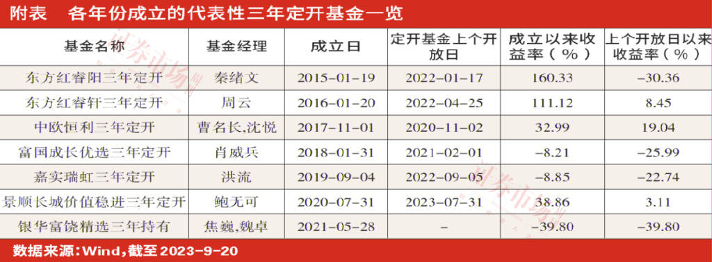 在当前经济弱复苏下,二级市场呈现结构市行情,热点快速轮转,这也让基金持有者对于手里的基金多了几分焦虑。如果无法卖出,基金投资者或许无法及时锁定收益并落袋为安。作为尝试解决基民不赚钱的方法,基金公司做出了不同特征的锁定期产品尝试,如传统的定期开放式基金以及卖出时点更加灵活的设定持有期的基金,投资者应根据自身设定的投资周期选择。