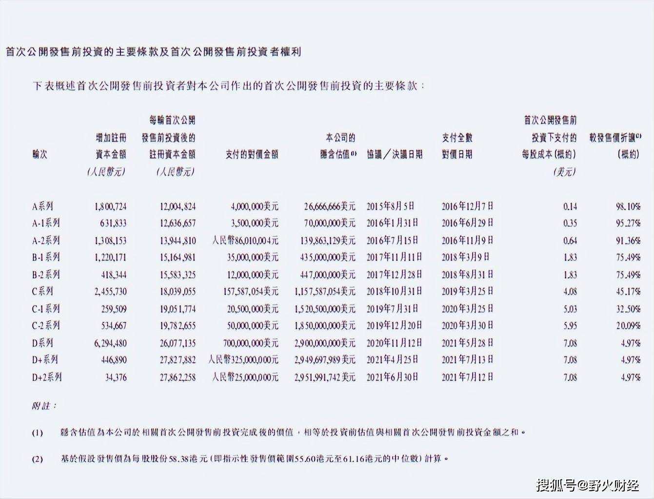 公司发行价为55.6港元,为招股区间的下限,发行大约1840万股,总募资净额大约8.4亿港元,该募资额远远低于其D轮融资规模。