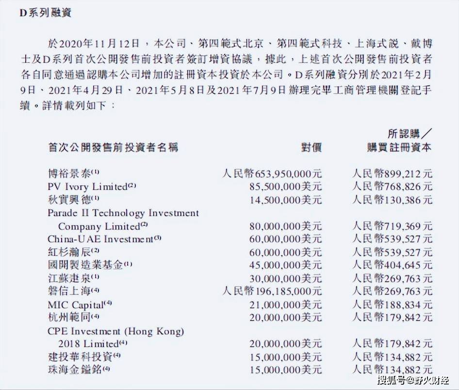 又以D轮融资规模最高,中信证券等股东共计投资7.5亿美元,占其历次融资额度(9.8亿美元、4.4亿元人民币,合计大约10.4亿美元)近75%。