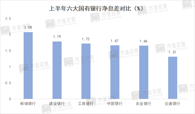 此外,农行的净息差也不高。今年上半年为1.66%,去年同期还在2.02%,同比下降了0.36%,降幅高于建行的0.3%、工商银行的0.31%以及中行的0.1%,在6大国有银行的排名由第4位降到了第5位。