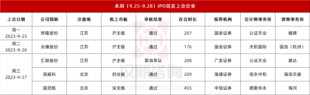 本周(9月25日-9月28日),IPO审核5家。其中,4家获通过,1家上会前取消审议。