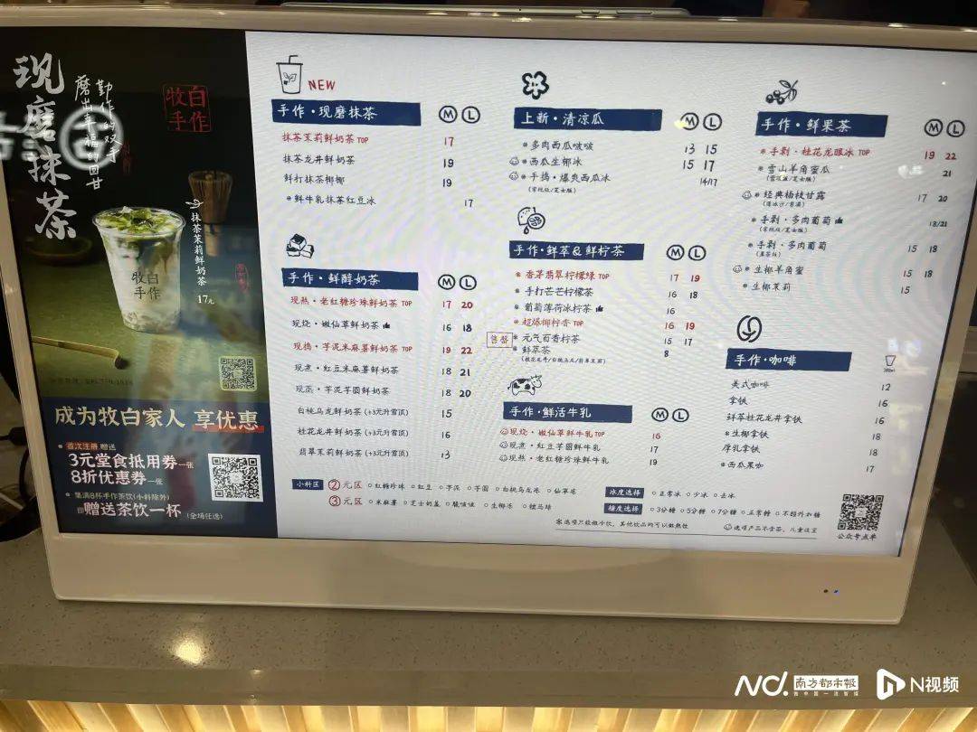 9月14日,南都湾财社记者走访牧白手作浙江台州意得广场店看到,尽管菜单显示,多杯茶饮均标注有“现捣”“现蒸”“现烧”“现煮”“现熬”“手捣”“手剥”等字眼,但门店并没有店员在现场熬制底料。