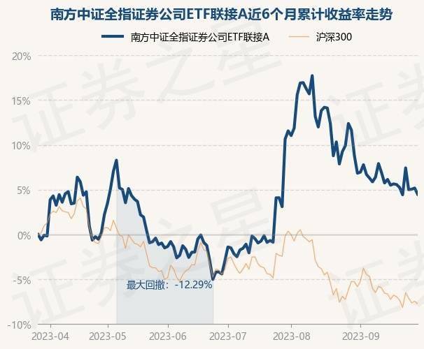 9月28日,南方中证全指证券公司ETF联接A最新单位净值为1.0034元,累计净值为1.0034元,较前一交易日下跌0.66%。历史数据显示该基金近1个月下跌7.03%,近3个月上涨9.04%,近6个月上涨4.47%,近1年上涨13.69%。该基金近6个月的累计收益率走势如下图: