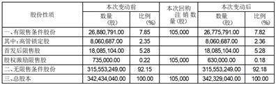 中国证券登记结算有限责任公司深圳分公司已于2023年9月28日办理完成上述部分限制性股票的回购注销事宜,公司总股本由342,434,040股调整为342,329,040股。回购注销完成的具体内容请详见披露在《中国证券报》《上海证券报》《证券时报》《证券日报》和巨潮资讯网(www.cninfo.com.cn)《关于部分限制性股票回购注销完成的公告》(公告编号:2023-089)。