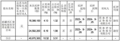 截至公告披露日,新疆兴汇聚及其一致行动人所持质押股份情况如下: