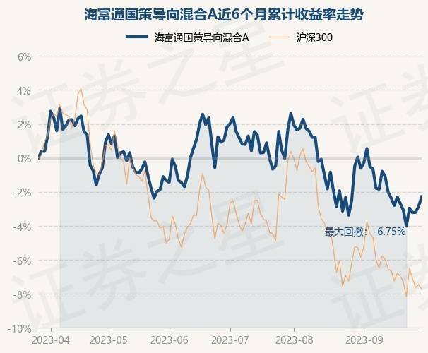 9月28日,海富通国策导向混合A最新单位净值为1.7628元,累计净值为2.8019元,较前一交易日上涨0.58%。历史数据显示该基金近1个月上涨0.21%,近3个月下跌3.17%,近6个月下跌2.28%,近1年下跌3.04%。该基金近6个月的累计收益率走势如下图: