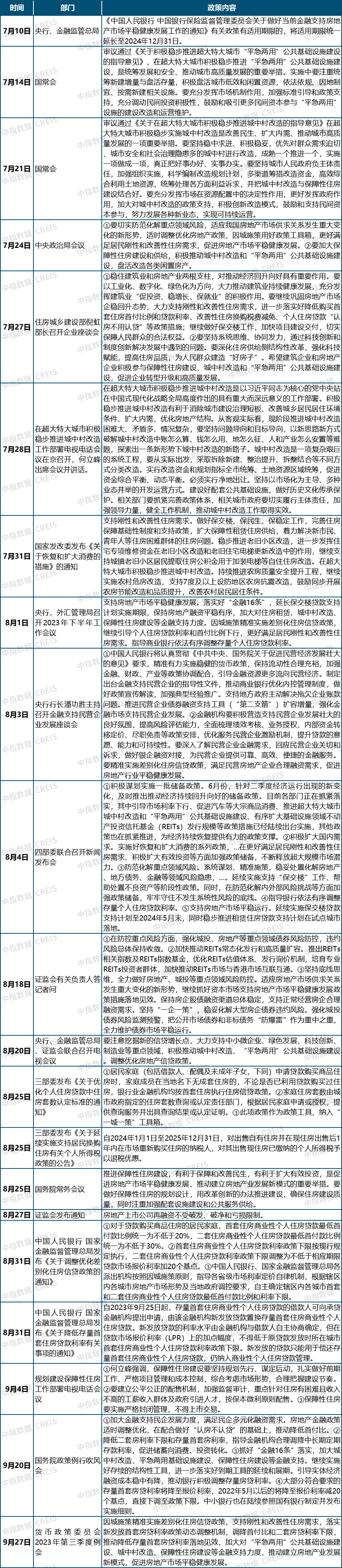 附表1:2023年三季度中央及相关部门楼市政策/表态(部分)