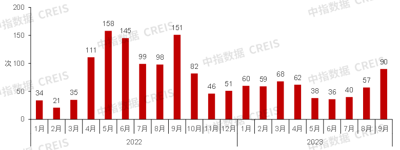 7.24中央政治局会议后,各地政策出台频次有所加快,政策支持力度增强。根据中指监测,2023年前三季度全国有超200省市(县)出台政策超400条,7月以来,各地优化政策频次整体呈上升态势,9月政策频次达去年四季度以来单月最高水平,核心二线城市政策落地力度加强。截至9月27日,已有50余省市明确发文落实首套住房“认房不认贷”政策,部分城市全面取消限购,多个核心城市缩小限购范围,各地落实差异化限贷政策,公积金支持政策仍是各地因城施策的主要手段。另外,各地供给端政策支持力度亦在增强,供需两端政策发力,力促房地产市场平稳运行。