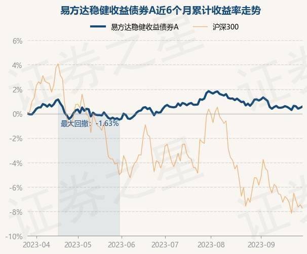 9月28日,易方达稳健收益债券A最新单位净值为1.3829元,累计净值为2.4135元,较前一交易日上涨0.1%。历史数据显示该基金近1个月下跌0.27%,近3个月上涨0.49%,近6个月上涨0.57%,近1年上涨1.37%。该基金近6个月的累计收益率走势如下图: