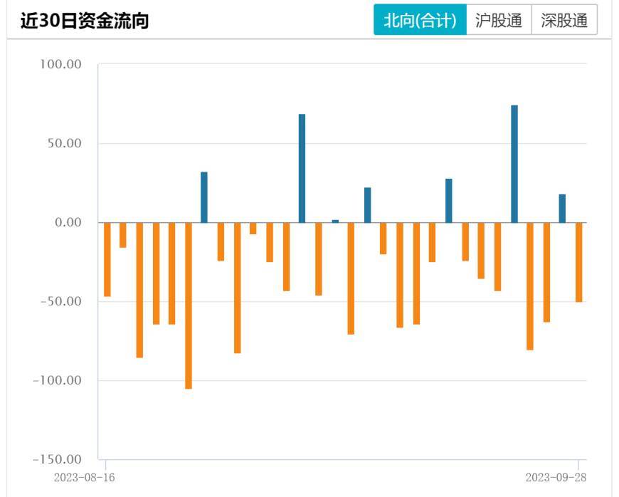 据Wind统计,北向资金周四全天净卖出49.95亿元。本周北向资金净卖出175亿元(本周仅有四个交易日),9月累计减仓近375亿元。