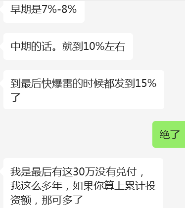 据李强透露,当时之所以购买不仅有公司指标的压力,也因为利息高,早期利息是7%-8%,中期到10%左右,到最后恒大快爆雷的时候利率能达到15%。这让当时买过理财的恒大员工至少占一半。