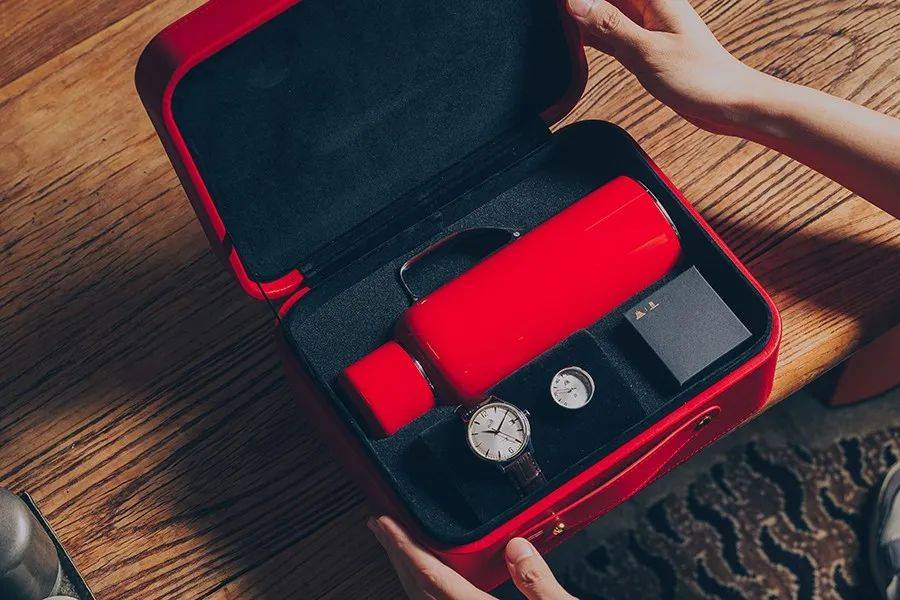 「上海传家礼」联名礼盒包含一把传家壶•mini和一只上海表致敬•创历者腕表,并附赠一条象征东方美好生活的红色表带,传承上世纪品质国货的文化精髓,延续东方生活方式的幸福感。一把传家壶•mini,还原记忆中热水瓶的经典形象,以颠覆式设计,重新定义一把保温壶。一只上海表致敬•创历者,以第一款量产机械手表A581为灵感来源,致敬上海表初代制表人的先锋精神。