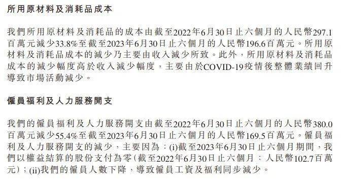 得益于门店数量减少,海伦司的成本终于开始回落。财报显示,2023年上半年,海伦司原材料和雇员费用支出分别为1.96亿元、1.69亿元,分别同比减少33.8%、60%。
