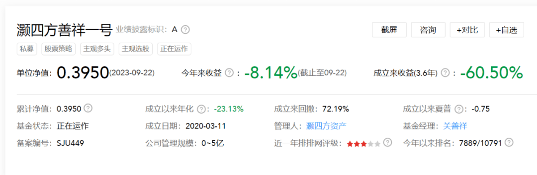 据私募排排网的数据显示,灏四方善祥基金1-5号产品和灏四方善慧产品的净值跌幅比较大,灏四方善祥一号净值跌幅超过60%,二号更是超过64%。