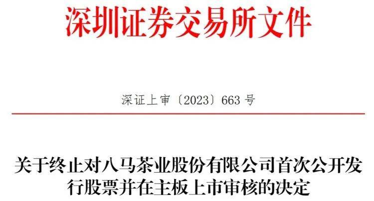 深交所网站9月28日公布关于终止对八马茶业股份有限公司(以下简称“八马茶业”)首次公开发行股票并在主板上市审核的决定。