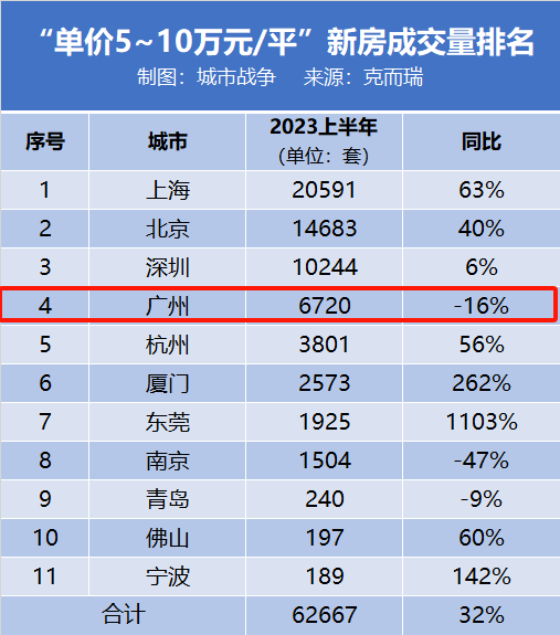 上半年,单价5~10万元的新房成交量,上海继续排名第一,成交20591套;