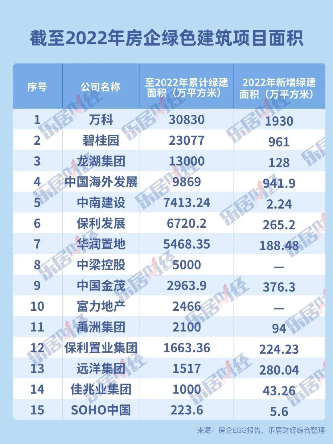 而中国金茂,2022年累计绿建面积为2963.9万平方米。据其披露,去年该公司在绿色建筑咨询、绿色建筑科技、智慧能源等绿色业务领域,获得了营业收入约9.879亿元。