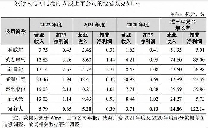 招股书显示,可比境内A股上市公司的经营数据显示,科威尔(688551.SH)、英杰电气(300820.SZ)等主要竞争对手营收近三年的复合增长率分别为51.95%、74.60%;扣非净利润的近三年的复合增长率分别为5.01%、85.00%。相较之下,爱科赛博的营收规模增速不及对手,但净利润呈现快速增长趋势。