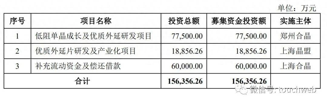 其中,7.75亿元用于低阻单晶成长及优质外延研发项目,1.89亿元用于优质外延片研发及产业化项目,6亿元用于补充流动资金及偿还借款。