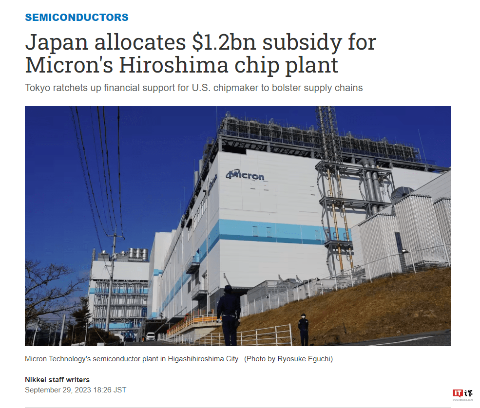 IT之家 9 月 30 日消息,据《日经新闻》报道,日本经济产业省正在将对美光广岛工厂的补贴从 3.2 亿美元增加到 12.9 亿美元(IT之家备注:当前约 94.17 亿元人民币),以加强国内半导体供应链。对于日本政府来说,这笔款项是更大计划的一部分,该计划包括向各种芯片公司投资数十亿日元,旨在增强日本的半导体实力。