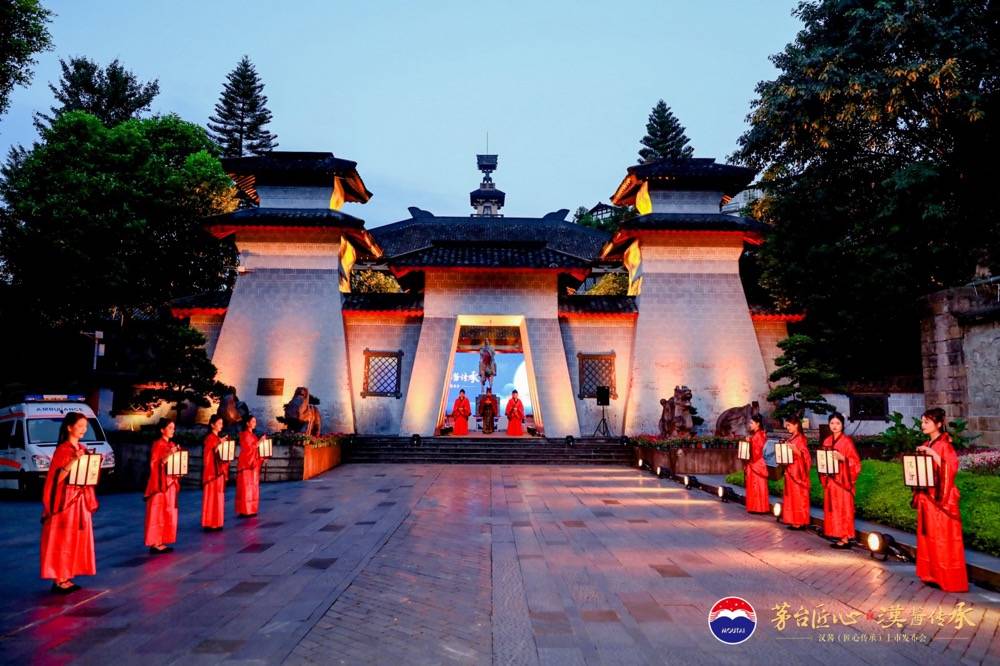 9月29日,中秋夜,茅台中国酒文化城古朴大气的汉阙门后,汉武帝刘彻戎装骑马的雕像,在满月的映衬下格外气势磅礴。两千多年前,就是这轮月,见证了大汉恢弘的气象,也将汉武帝“甘美之”的赞叹载入史书。
