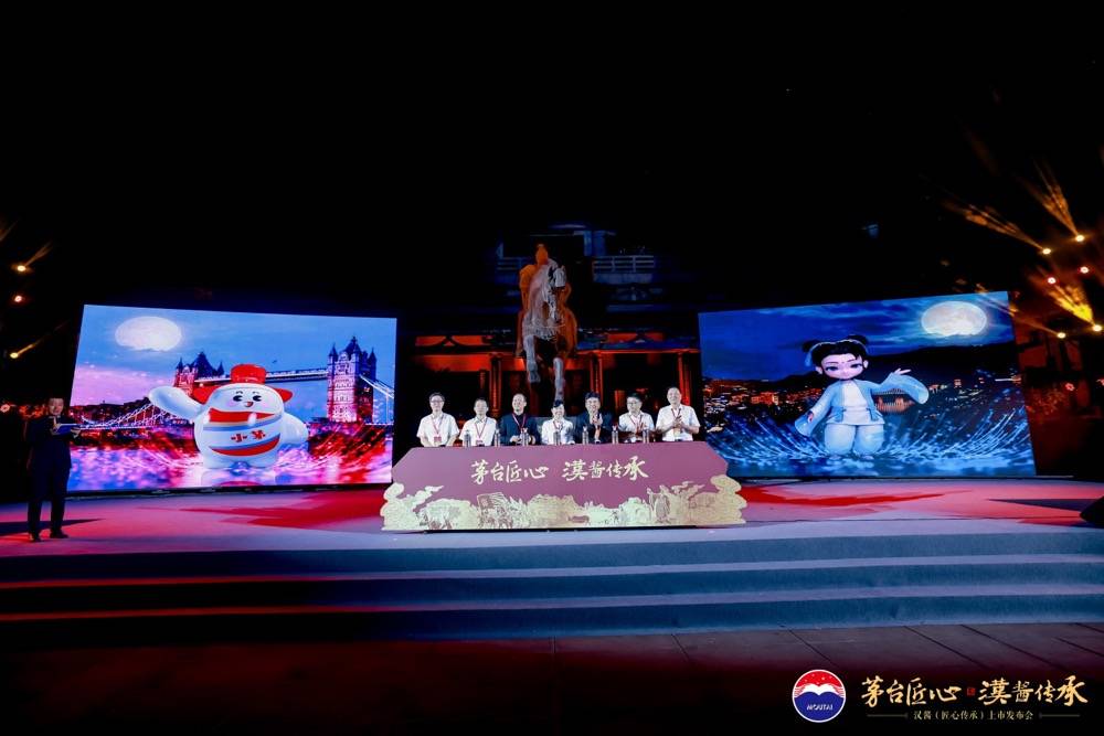 发布仪式,两位茅台数字人出现在会场左右两侧的屏幕上,与台上嘉宾一起将手中的赤水倒入启动台,共同为汉酱(匠心传承)的上市启幕。