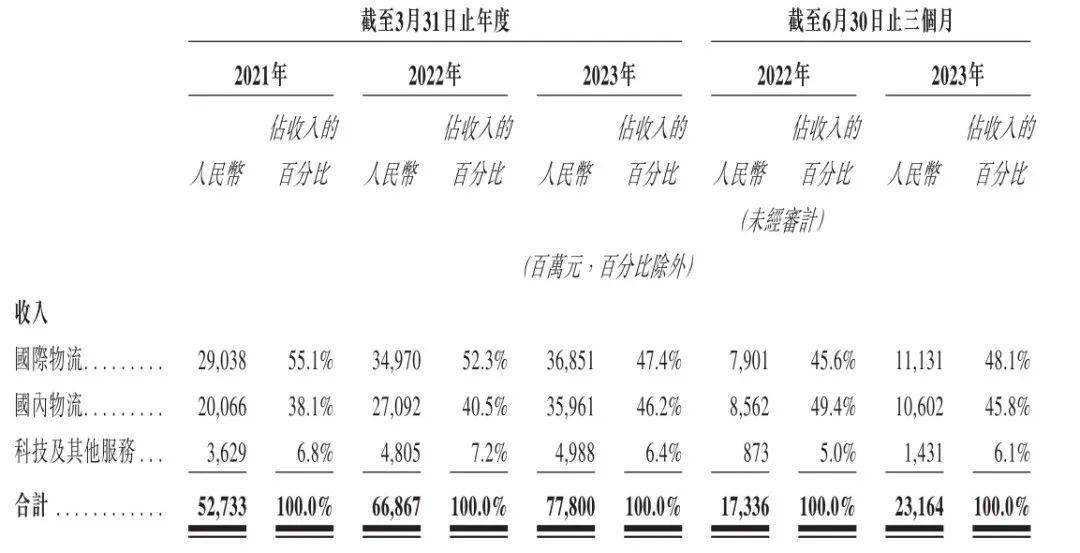 公司有三大业务,分别为国际物流、国内物流以及科技及其他服务。