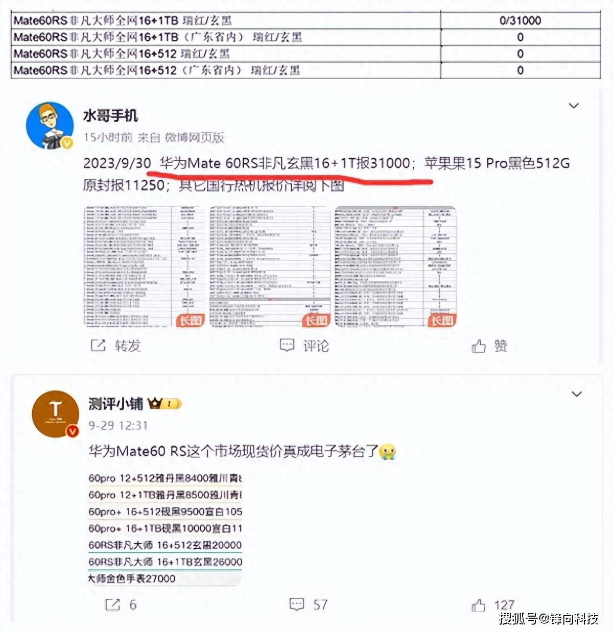 因此在讨论了几天之后iPhone 15系列也就归于平庸了,但是有一款机型今年的热度远远超过iPhone 15系列,它就是华为Mate 60系列。特别是华为Mate 60 RS非凡大师版,目前是一机难求的状态。第三方甚至加价到31000元,网友把它称之为电子茅台。31000元是一个什么概念呢?简单地讲比iPhone 15 Pro Max顶配版贵一倍多。一台华为Mate 60 RS非凡大师版现在可以买两台iPhone 15 Pro Max了。