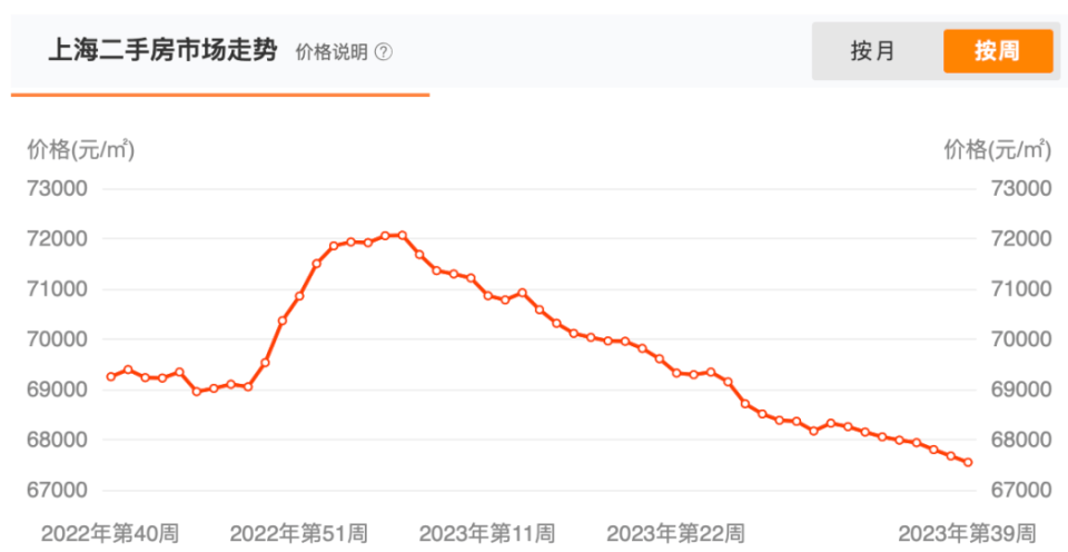 诸葛找房小程序显示,二手房新增房源数量仍然在上升,并且挂牌均价比8月份下降9.64%。按照周度价格走势来看,这一下降趋势从今年3月开始,进入下半年降幅则更快。