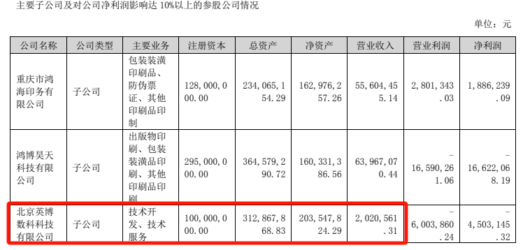 图为:鸿博股份2023年半年报部分子公司财务数据