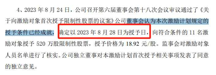 8月28日,鸿博股份以此为授予日,向符合条件的11名激励对象授予520万股限制性股票,授予价格18.92元/股。