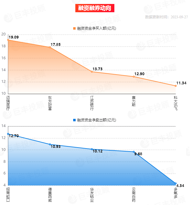 本季度融资资金抢筹居前的股票包括迈瑞医疗、东方财富、江苏银行、赛力斯、科大讯飞。