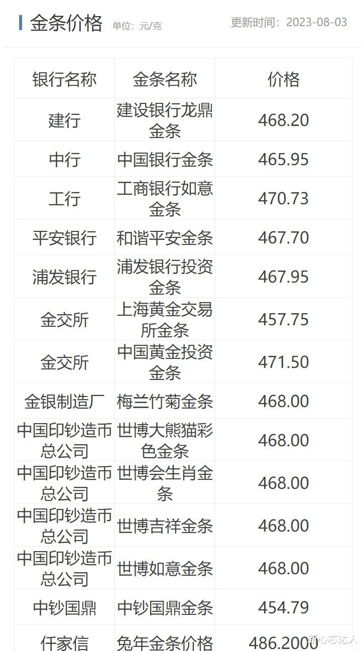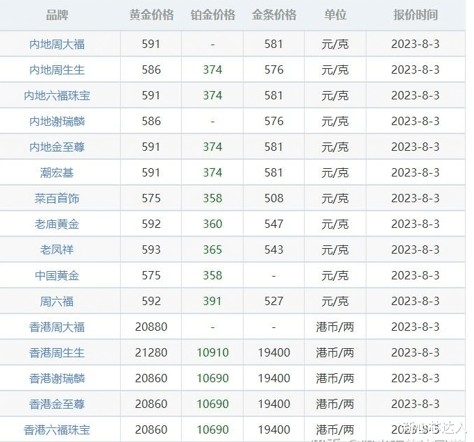 看完了以后金条价格,再来看看金店最新的金价.