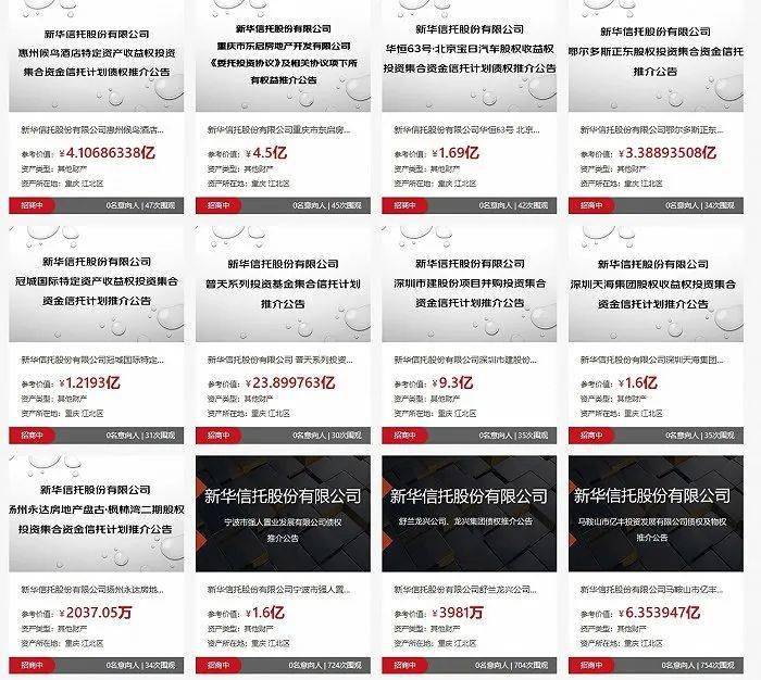 随后于8月,新华信托首批可处置资产上线京东及阿里两大拍卖平台。