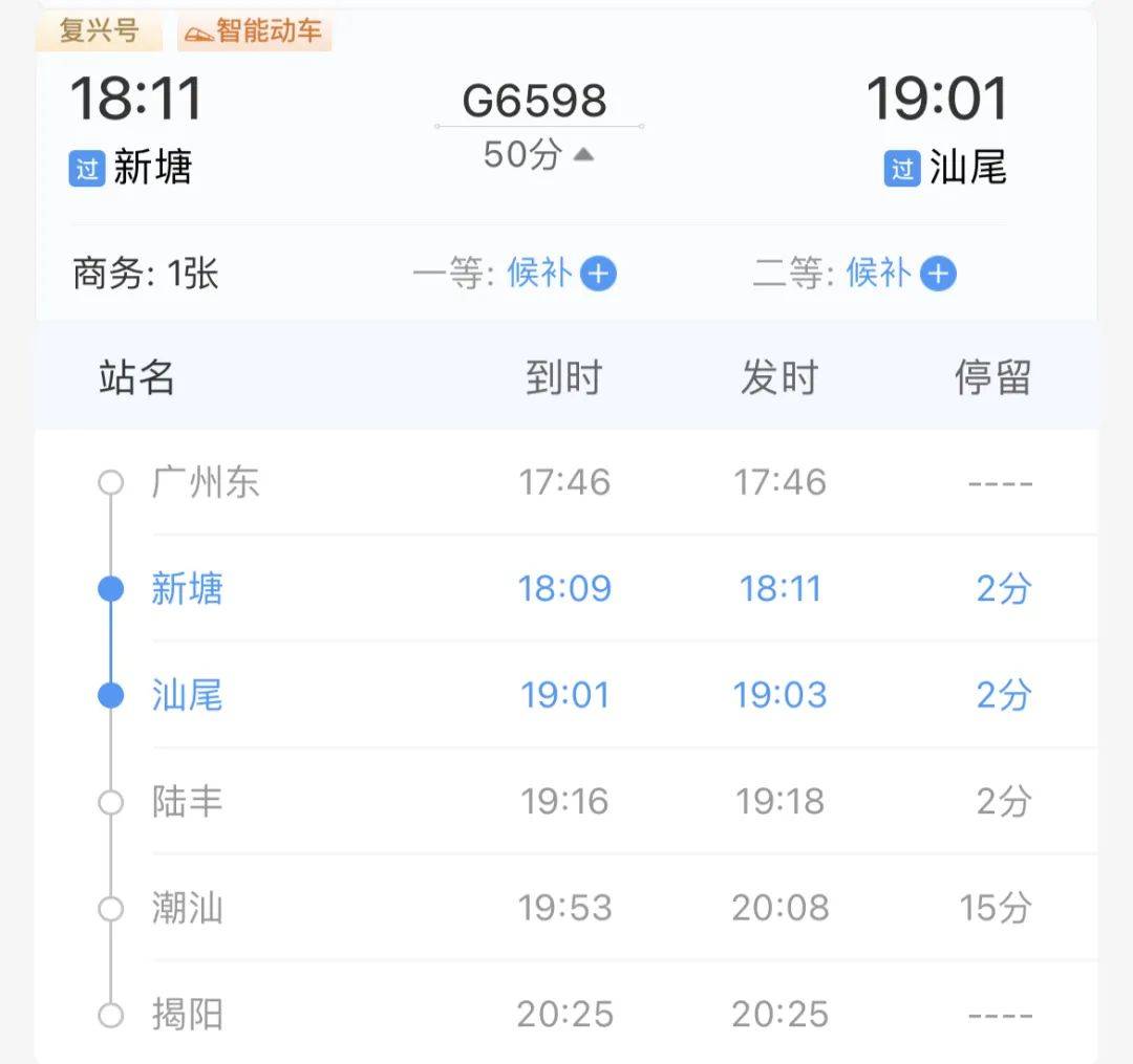 作为东部中心,新塘无论规划还有政府投入,都远超其它板块,例如国庆前开通的广汕高铁,从新塘到汕尾,最快只需50分钟。(来源:12306)