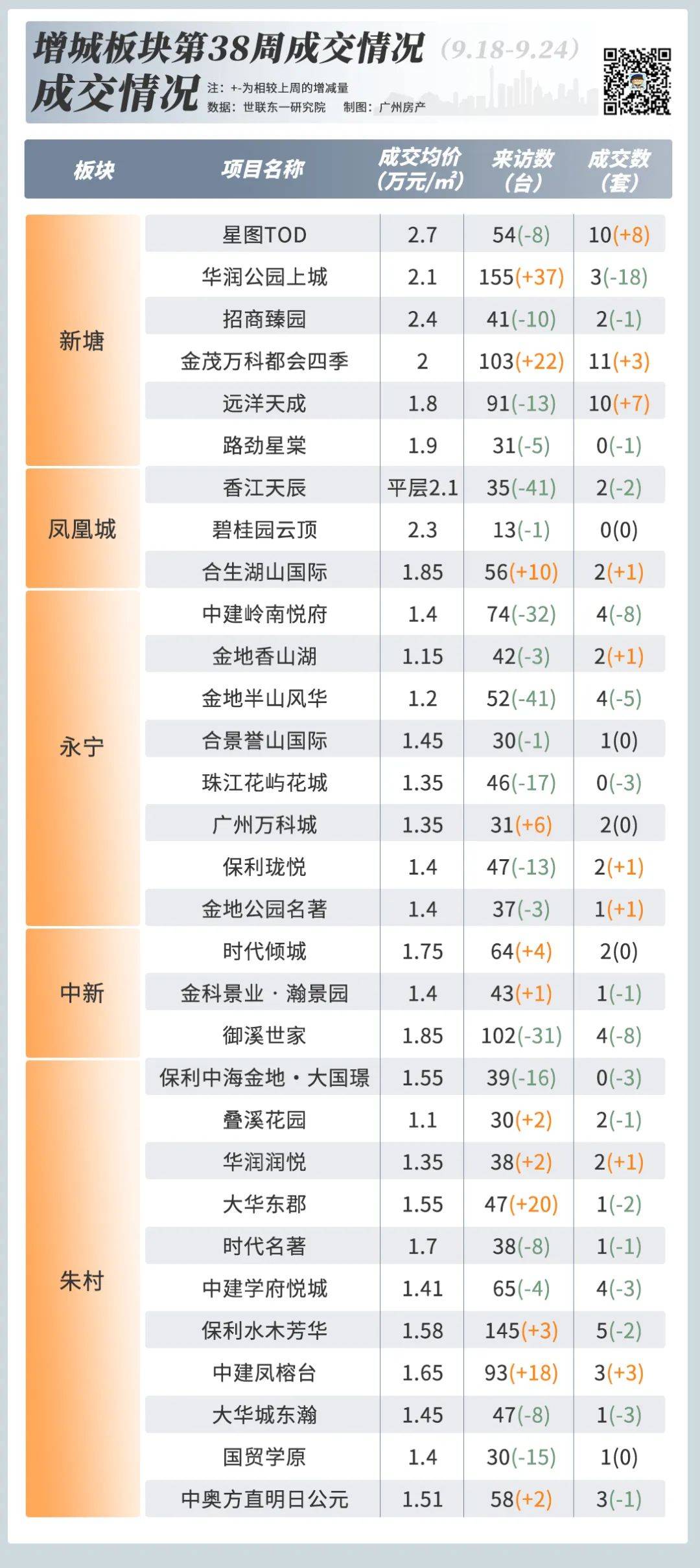 从数据可以看出,增城的热度和成交新塘板块都是TOP1。