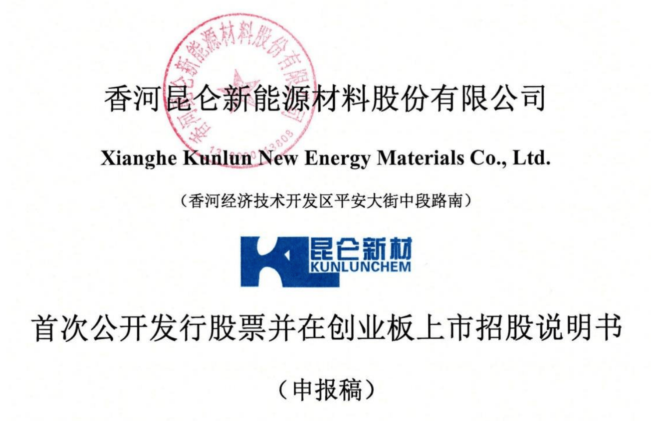 乐居财经 邓如菲 6月16日,香河昆仑新能源材料股份有限公司(以下简称“昆仑新材”)披露首次公开发行股票并在创业板上市招股说明书(申报稿)。