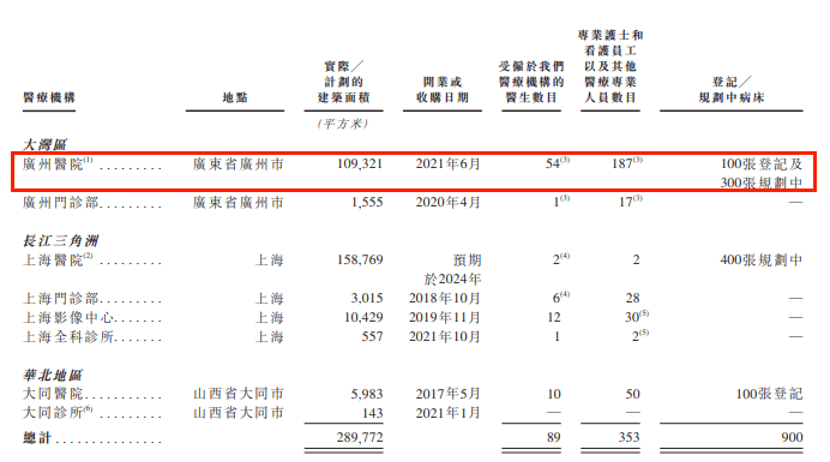 从公司现有已经在运营的医疗机构来看,广州医院是公司床位规划最多、建筑面积最大、医疗资源投入最多的医院。