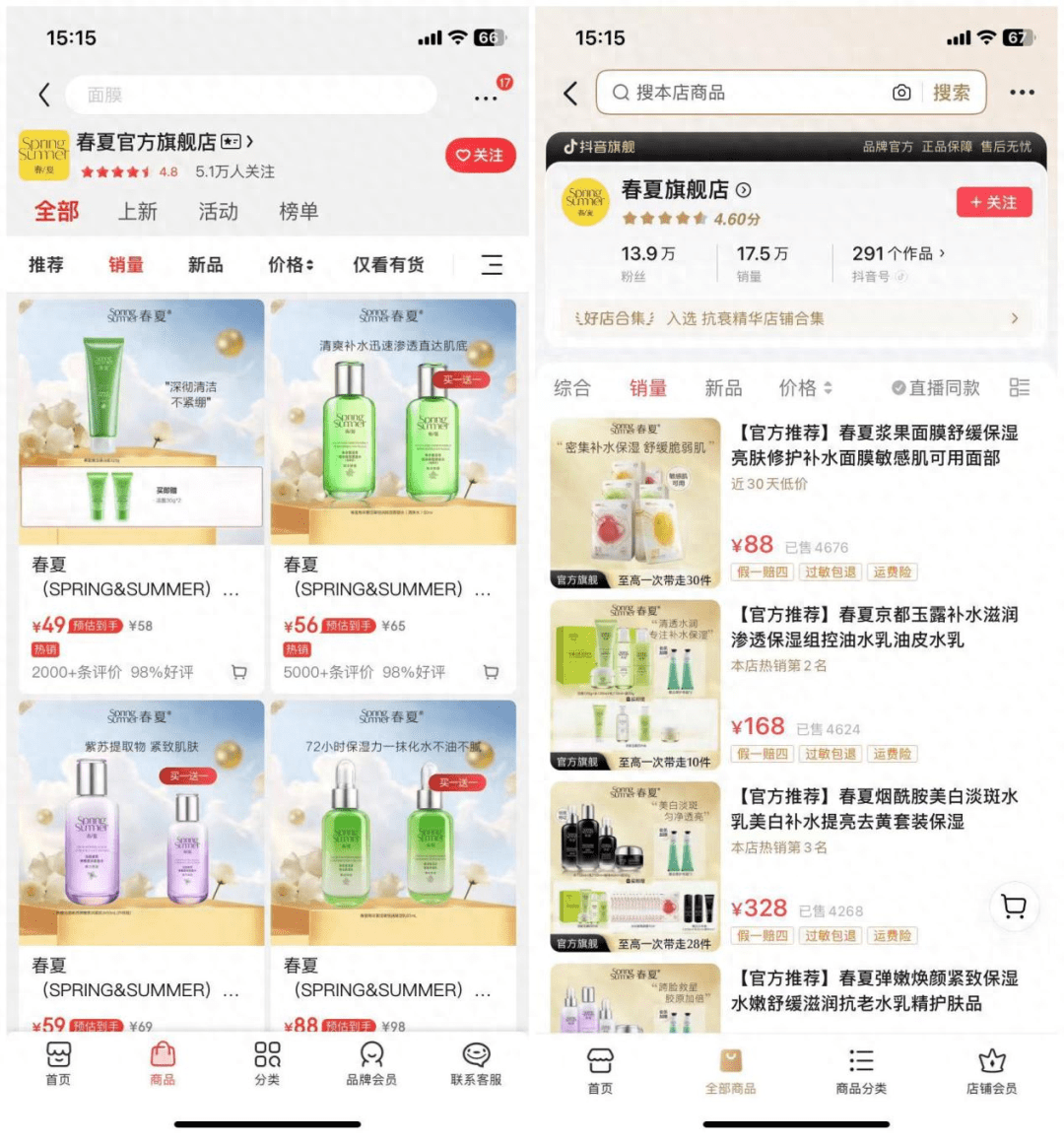 显然伽蓝集团也意识到这一问题。自2016年起,其就不断丰富产品线。以子品牌春夏为例,其在抖音旗舰店中,最高产品销量也仅有4000多单。在京东旗舰店中,部分销量较高的产品评论量也只有2000多条。这些数据或许能从侧面反映出该品牌的整体销量数据。