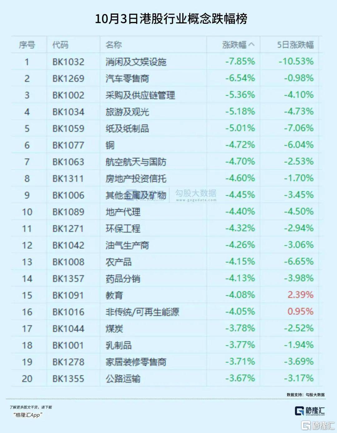 今天港股跌幅榜上,地产、消费、能源、汽车等板块跌幅最多。