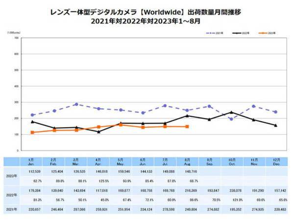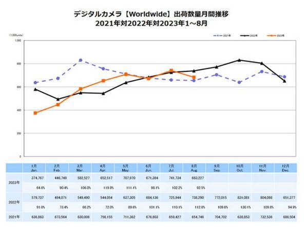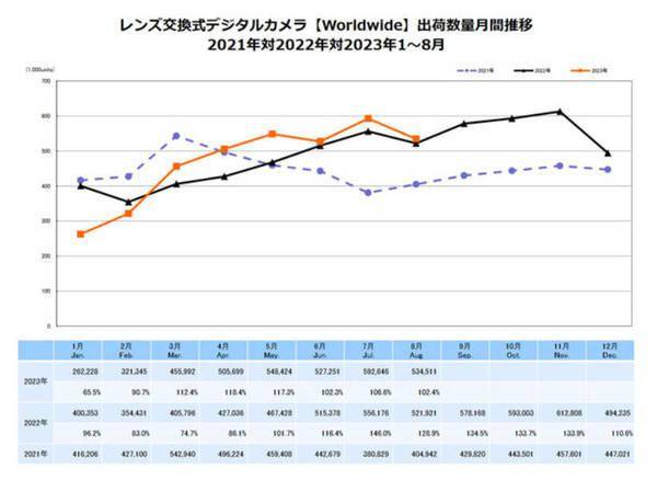 【CNMO新闻】10月3日,CNMO注意到,CIPA(日本影像器材工业协会)公布了2023年8月份全球范围内的数码相机和可更换镜头的生产和出货结果以及图表,这也是目前的最新数据。值得一提的是,全球数码相机销量再度开始下跌,但唯独中国市场例外。