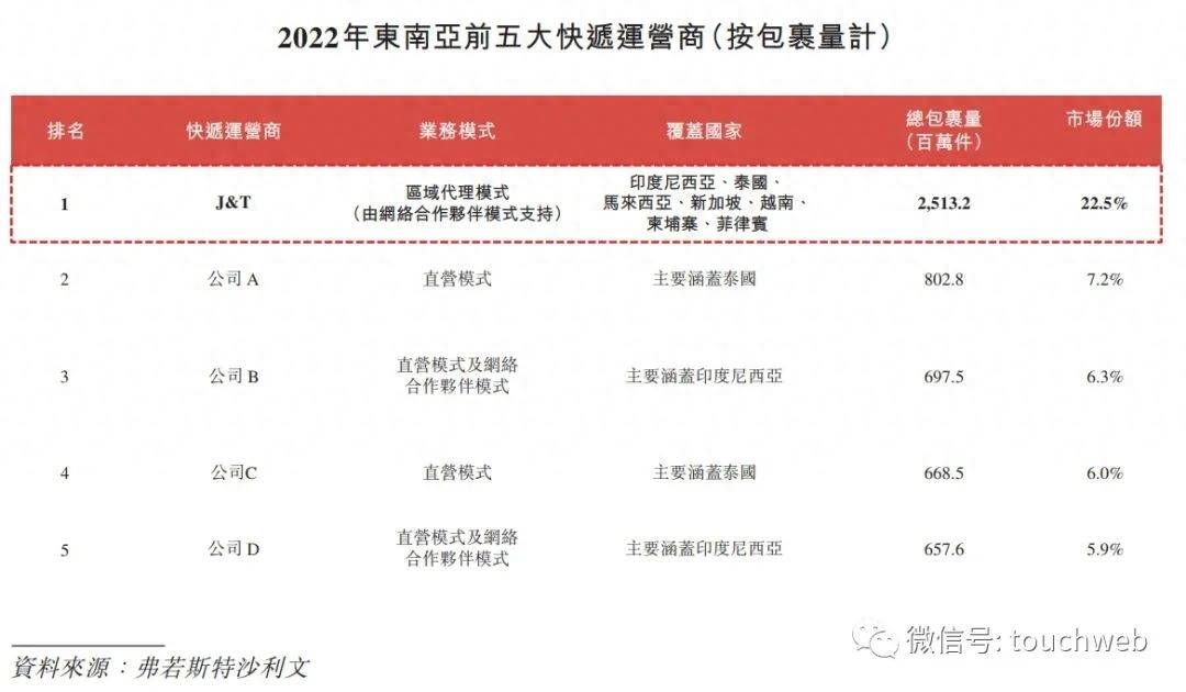 在东南亚,极兔在2023年7月及8月的平均单日包裹量(即当月平均包裹数量除以当月天数)为970万件及1050万件,较2022年7月及8月的平均单日包裹量710万件及710万件增长36.7%及增长48.4%;