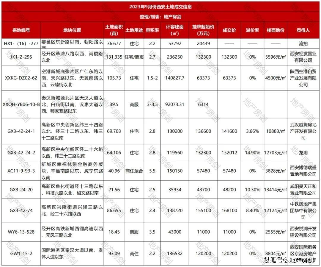 根据地产房剑统计,2023年9月份西安共计有11宗开发用地迎来挂牌结束、正式拍卖。