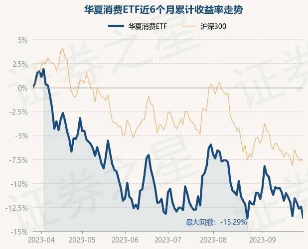 9月28日,华夏消费ETF最新单位净值为1.0328元,累计净值为4.1312元,较前一交易日下跌1.31%。历史数据显示该基金近1个月下跌1.55%,近3个月下跌2.16%,近6个月下跌13.54%,近1年下跌13.91%。该基金近6个月的累计收益率走势如下图: