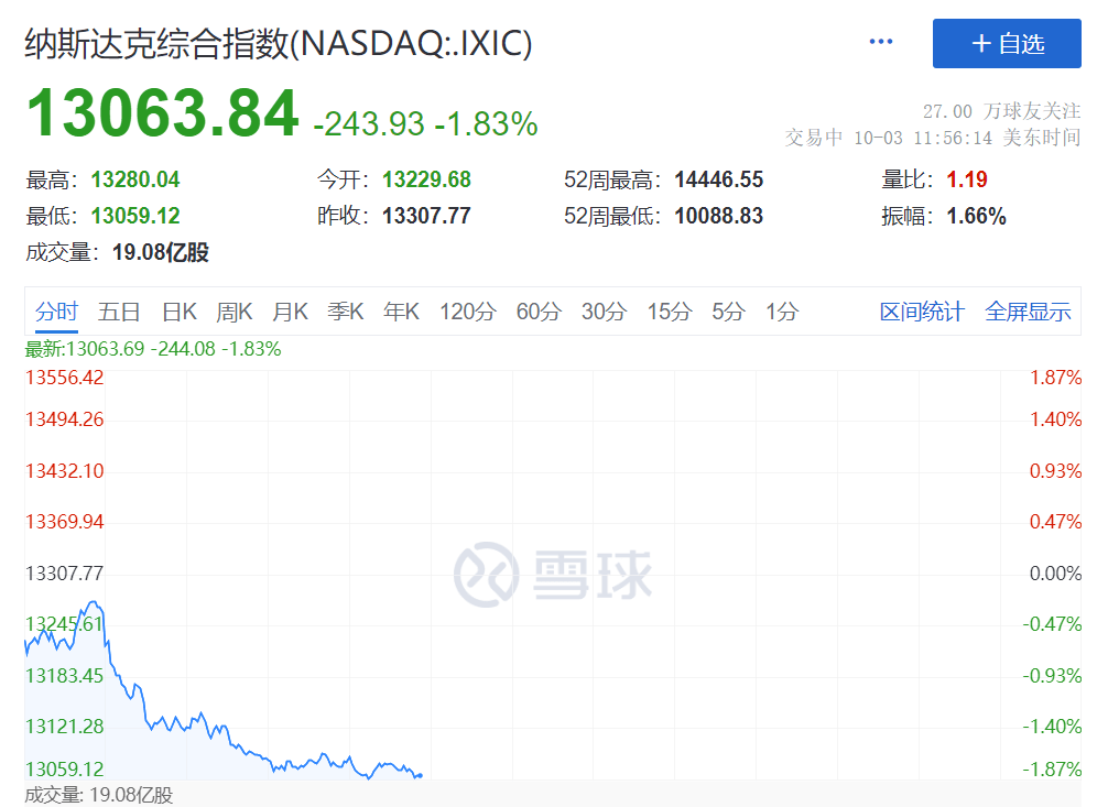 美股周二早盘继续下滑,道指暴跌400点,纳指暴跌近2%。