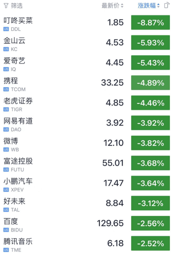 中概股大跌。
